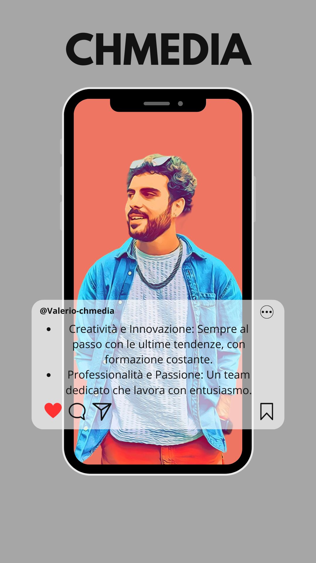 Attualmente lavoro con CHMedia, dove mi occupo della creazione di contenuti dinamici come grafiche e video per tutte le principali piattaforme social, da YouTube a Instagram, da TikTok a LinkedIn, e oltre.